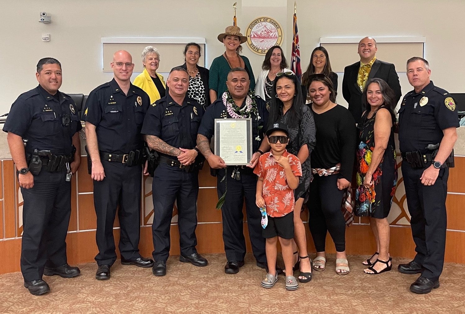 For his compassion and dedication in helping a disabled veteran in South Kohala, Officer Richard Nery Jr. was honored with the Haweo Award during a ceremony held at the West Hawai‘i County Council chambers in Kona on Wednesday, October 18, 2023.
