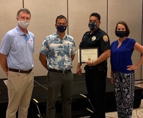 For his stellar investigation skills and attention to detail working crime scenes, Hawai‘i Police Department Officer Edward Lewis was recognized by the Hawai‘i Island Security and Safety Professionals Association (HISSPA) as HISSPA Officer of the Quarter for Q1 2021 on Friday, May 14 in South Kohala.