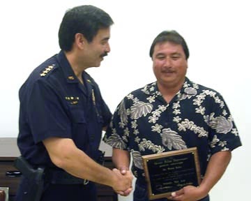Two Big Island citizens received commendation plaques from Chief Lawrence K. Mahuna Thursday (August 10, 2006) for going to the aid of an officer who was being assaulted by a combative suspect.