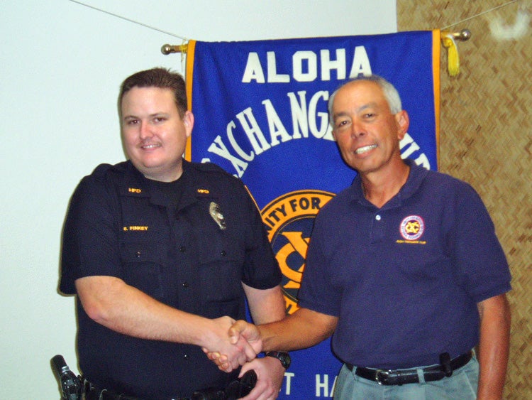 Officer Sandor Finkey of the Puna Patrol District was named Police Officer of the Month for January 2005 by the Aloha Exchange Club of East Hawaii.